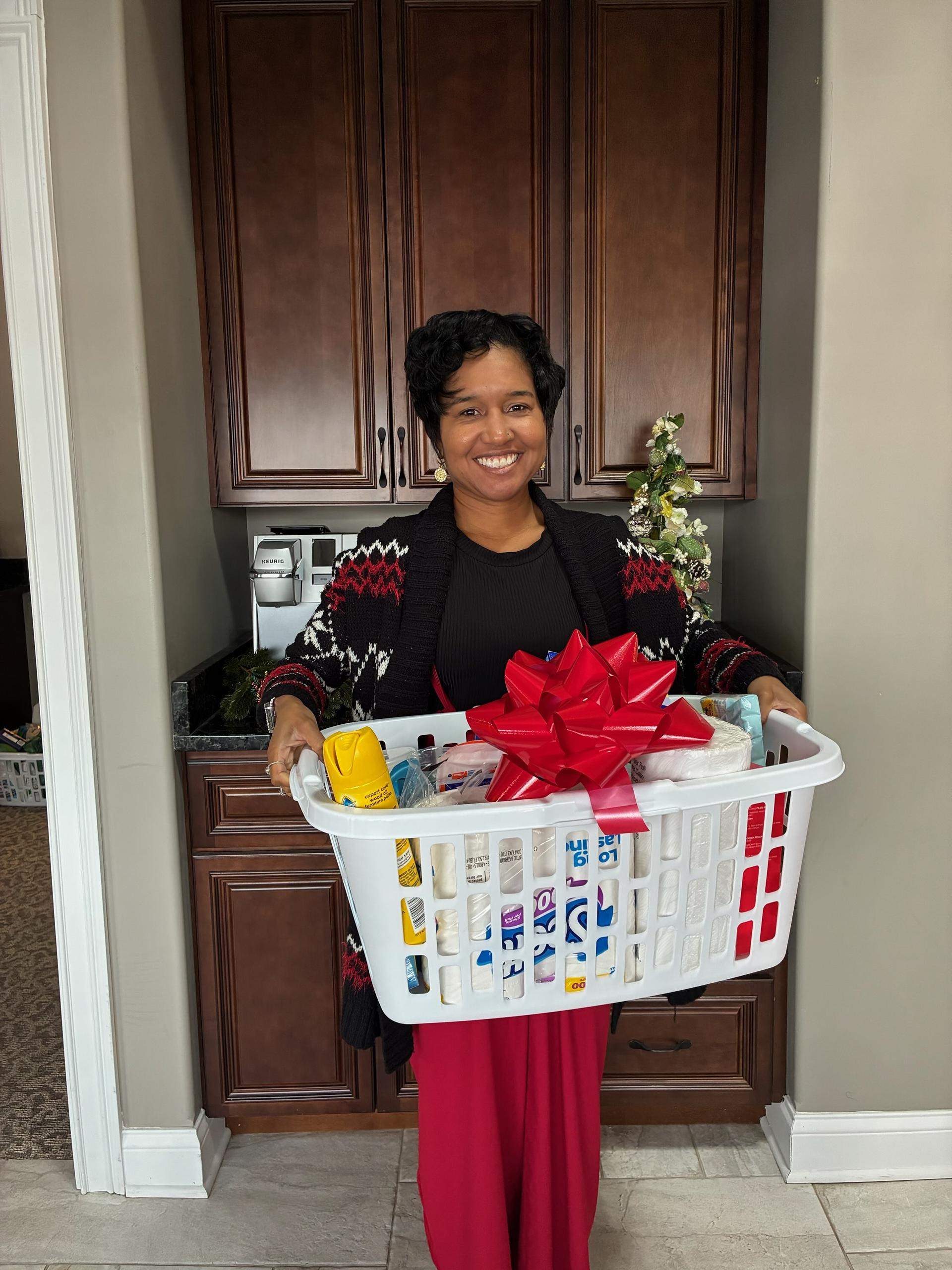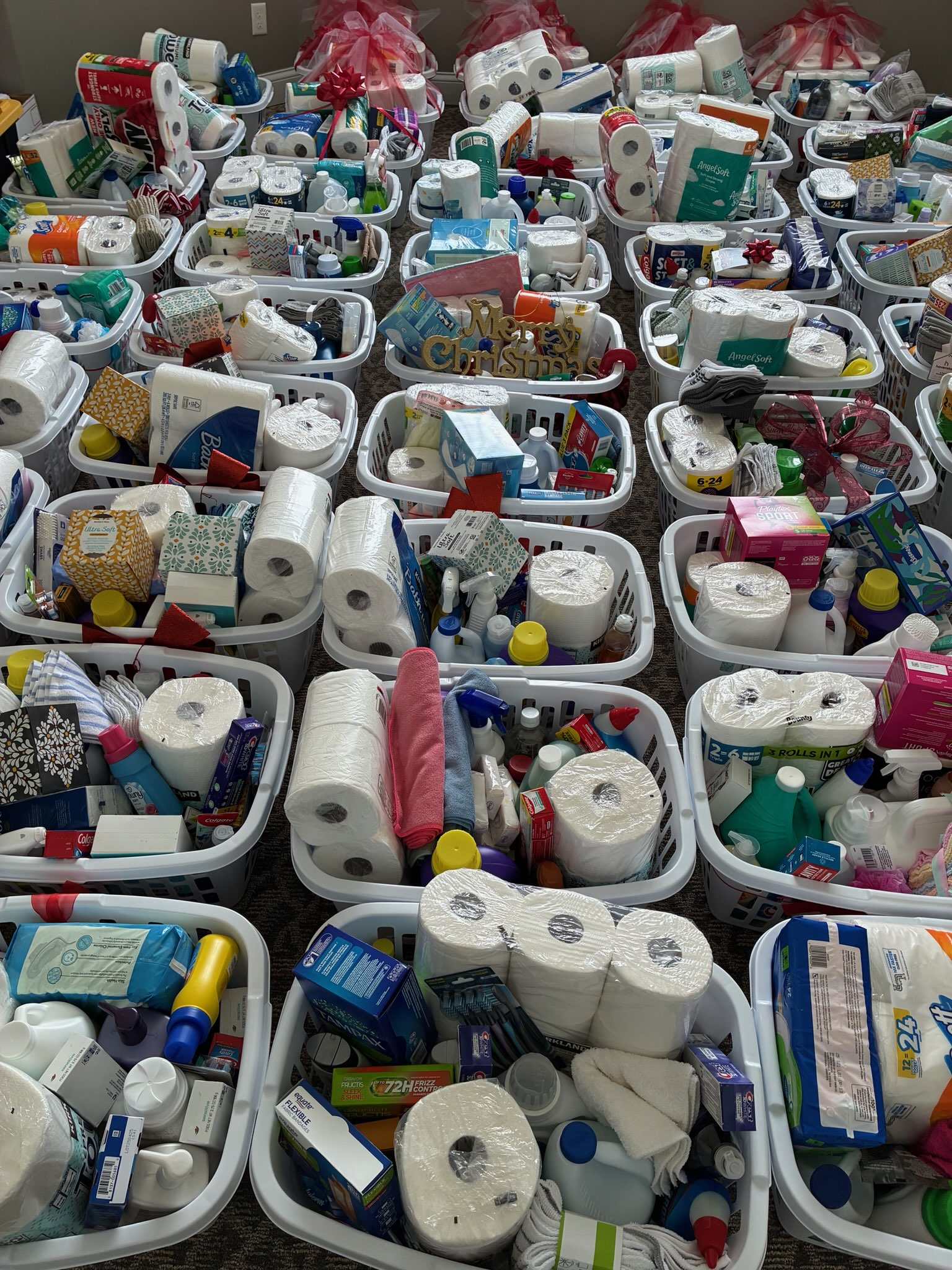 More Red Ribbon 🎀 baskets than ever! It was a good thing there was an extra storage room available on the second floor of our building, because you filled so many baskets for The Salvation Army that we literally could not have fit them in our offices.